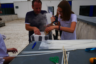 Trotz unserer Müdigkeit galt es nun konzentriert die letzten Schritte bis zum Start des Ballons vorzubereiten. Aus diesem Grund teilten wir unsere Gruppe auf: Während die einen den Startplatz auf dem Realschuldach präparierten (Heliumflasche, Matten, Handschuhe,…), prüften die Anderen ein letztes Mal die Elektronik und die ECC-Sonde. Nachdem die letzten Tests abgeschlossen waren, ging es dann an das Bestücken der Sonde. Dank einer geschichteten Aufteilung und einer sinnvollen Verteilung der Komponenten war es uns so möglich die Innentemperatur der Box stabil bei einer Temperatur von 10 Grad Celsius zu halten.